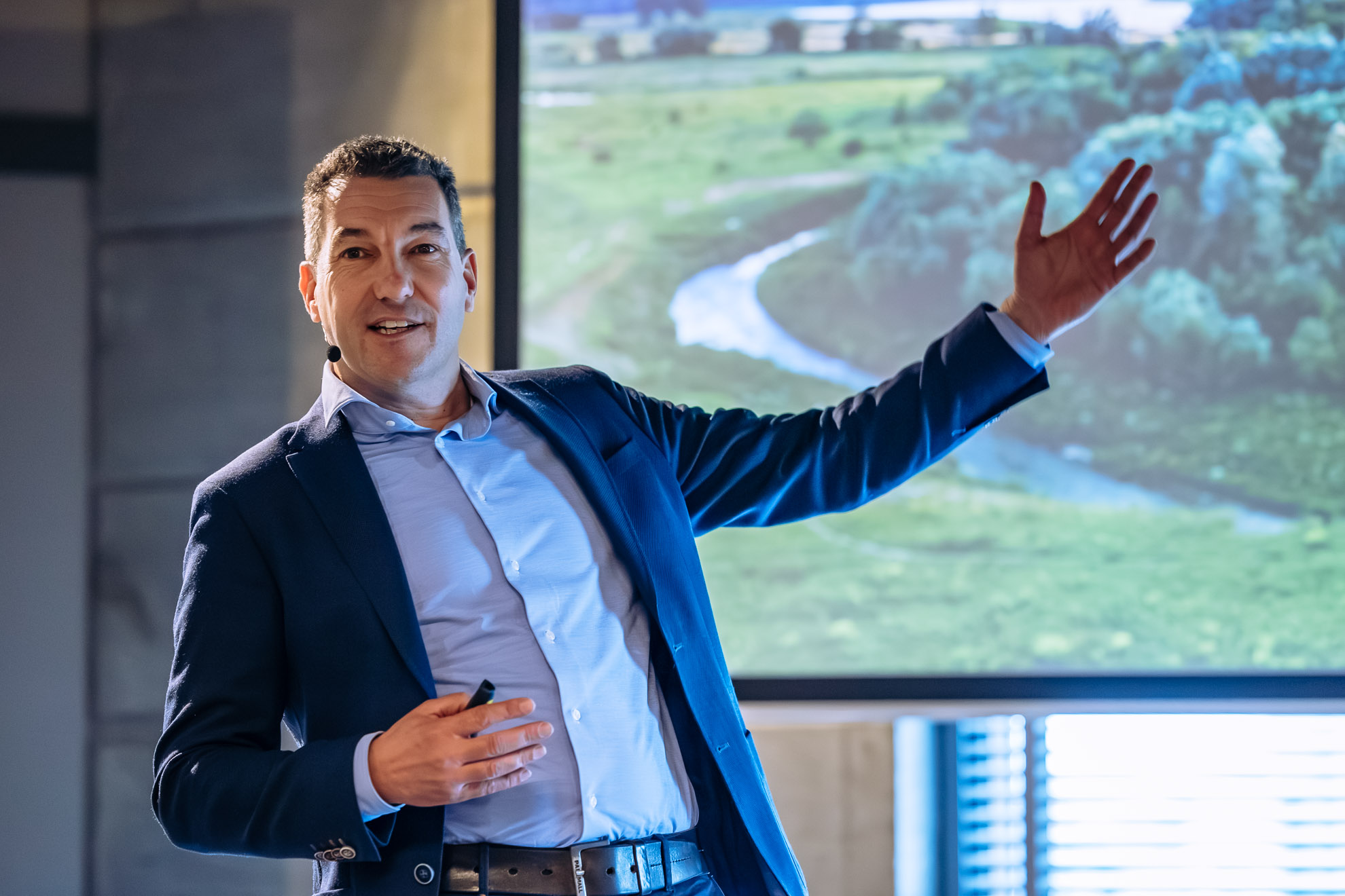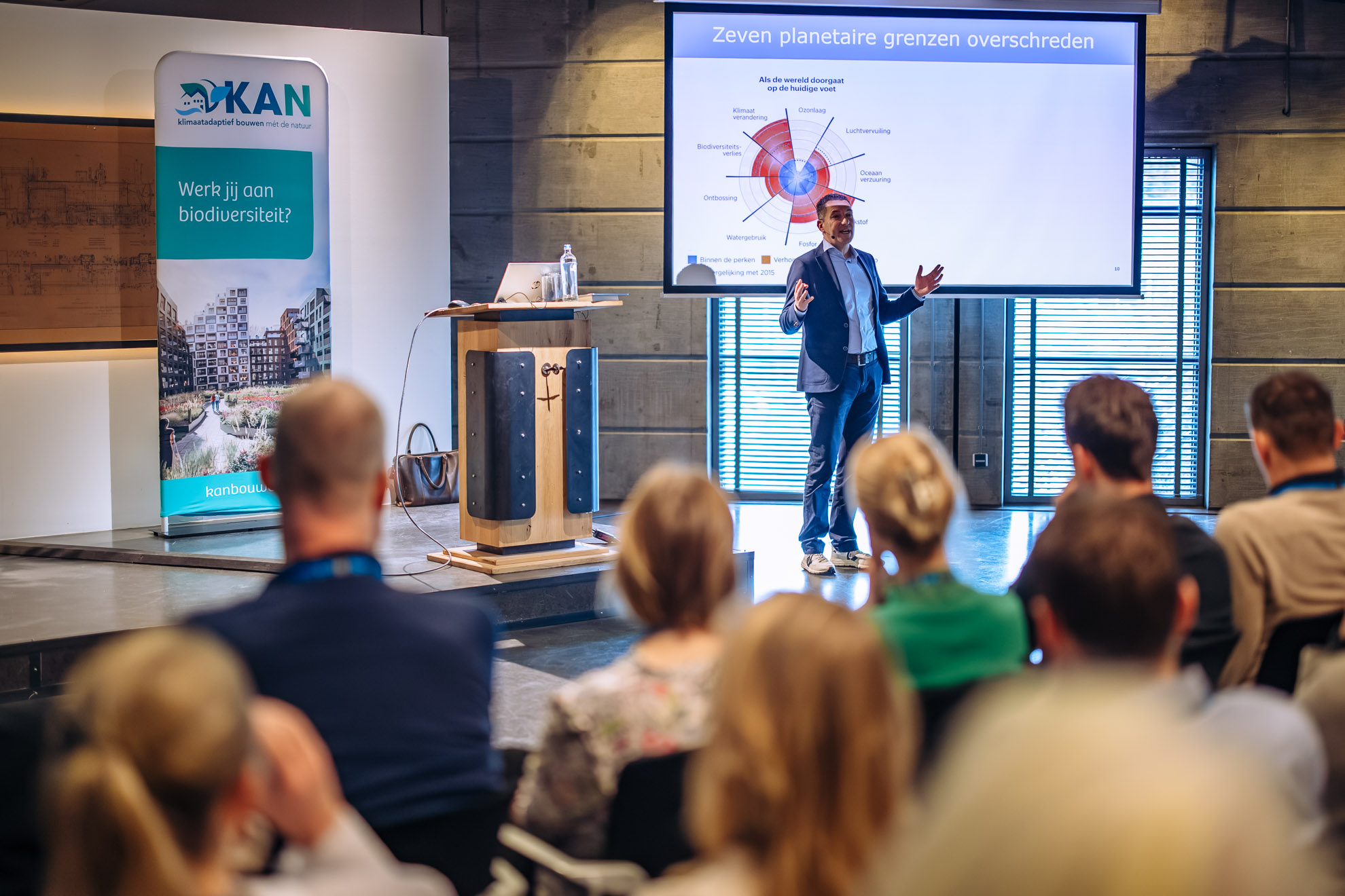 De eerste spreker die zich aan bespiegelingen over dit noodzakelijke wonder waagt, is Tim van Hattum, bekend van de kaart van Nederland 2120. Vijf jaar geleden haalde hij er alle kranten mee, zelfs de Linda. ‘Dus door dat laatste weet je dat er hoop is’, knipoogt de Wageningse wetenschapper, die recent een eredoctoraat van de Open Universiteit ontving.