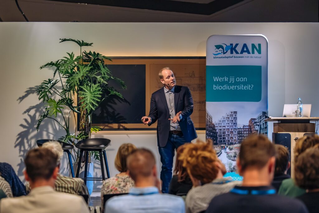 Het gaat niet zo goed in de steden. ‘Bouwen, bouwen en bouwen’ gaat niet goed samen met de klimaatdoelen, en dan gaat het niet alleen over de uitstoot van bouwmaterialen als beton en staal, begint Joris Voeten, onderzoeker bij Wageningen Environmental Research en vaker gesignaleerd op KAN-bijeenkomsten. ‘En het wordt er allemaal niet makkelijker op in de toekomst: droogte, wateroverlast en een dreigend drinkwatertekort in 2030.’