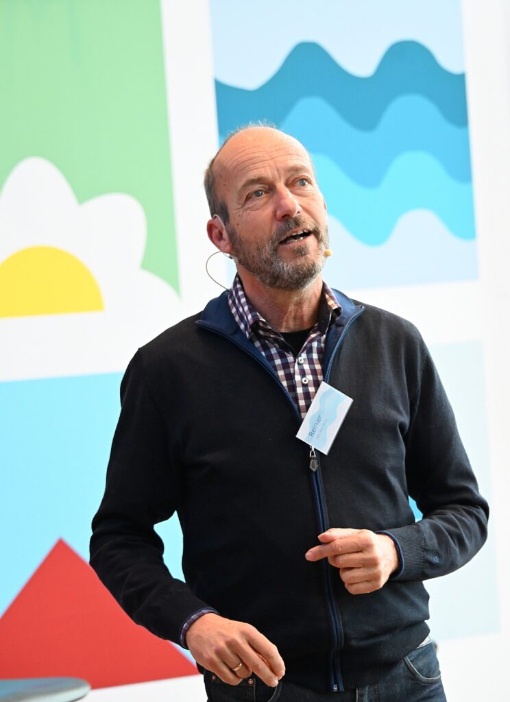 Reinier van den Berg stopte in 2024 met zijn werk als TV-weerman, “na 35 jaar depressies aankondigen, wat een vak!” In zijn presentatie zoomt hij in op het verband tussen klimaatverandering en de beschikbaarheid van drinkwater. Na een kort college over de relatie tussen de uitstoot van broeikasgassen en temperatuurstijging – inclusief verwijzing naar Donald Trump – laat Van den Berg de klimaatstreepjescode van het KNMI voor neerslag zien: “Nederland is tot dusver natter geworden, maar die toename is niet gelijk verdeeld over de seizoenen.”