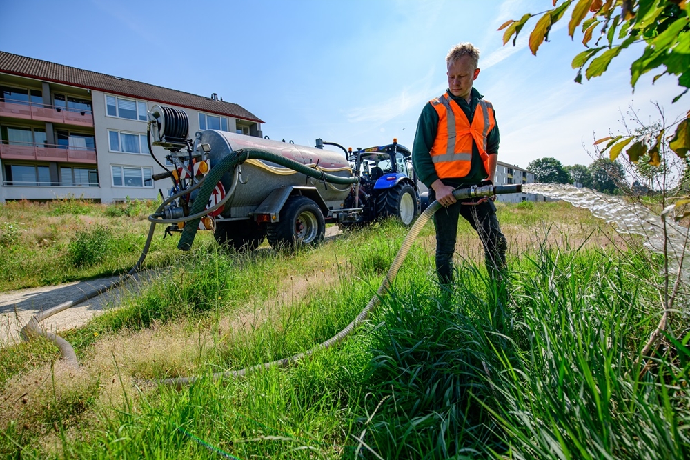 Planten krijgen water uit waterhub, vanuit tankwagen. Foto’s: Koos Mavrakis