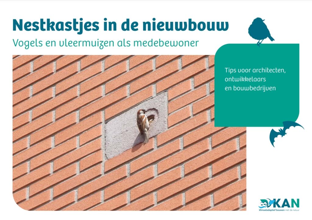 | Nestkastjes in de nieuwbouw ‘Nestkastjes in de nieuwbouw’ (KAN platform, pdf, augustus 2022) Bij natuurinclusieve nieuwbouw moeten we nest- en verblijfplaatsen bewust creëren, zonder dat het ten koste gaat van de energieprestatie. In deze KAN-publicatie brengen we de kennis van (stads)ecologen, ontwerpers en bouwpartijen bij elkaar. We geven praktisch realiseerbare oplossingen en beschrijven tips voor architecten, ontwikkelaars en bouwbedrijven. |  |