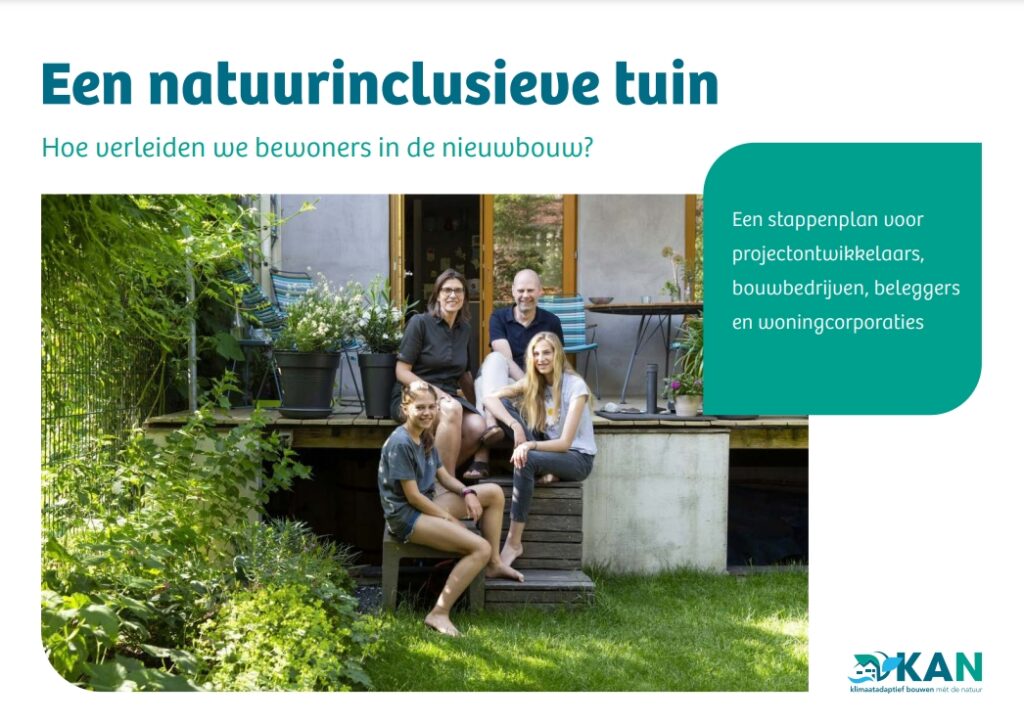 | Bewoners verleiden tot natuurinclusieve tuinen Mede met de inbreng van de KAN themagroep zetten we met ontwikkelaars, beleggers, corporaties en gemeenten een verleidingstraject op. We gaan proefdraaien bij verschillende nieuwbouwprojecten en verwerken de leerpunten in een definitieve aanpak. Onderdeel van dit traject is het stappenplan ‘Wonen met de natuur’ (KAN platform, pdf, mei 2021). |  |